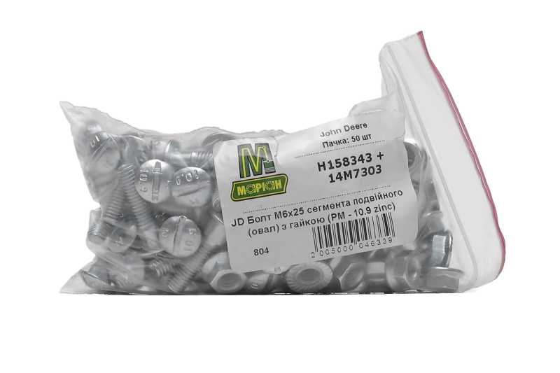 Болт подвійного сегмента під викрутку з гайкою жниварки комбайна JD М6х25(овал)(PM-10.9 Zinc)(M-Agro
