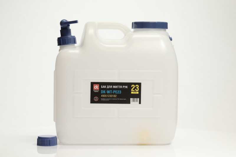 Бак для миття рук об’ємом 23 літри, призначений для зберігання питної води. Ідеальний для використання в умовах, де доступ до води обмежений. Легкий у використанні, забезпечує зручність і гігієнічність при митті рук. Підходить для побутового та професійного застосування.