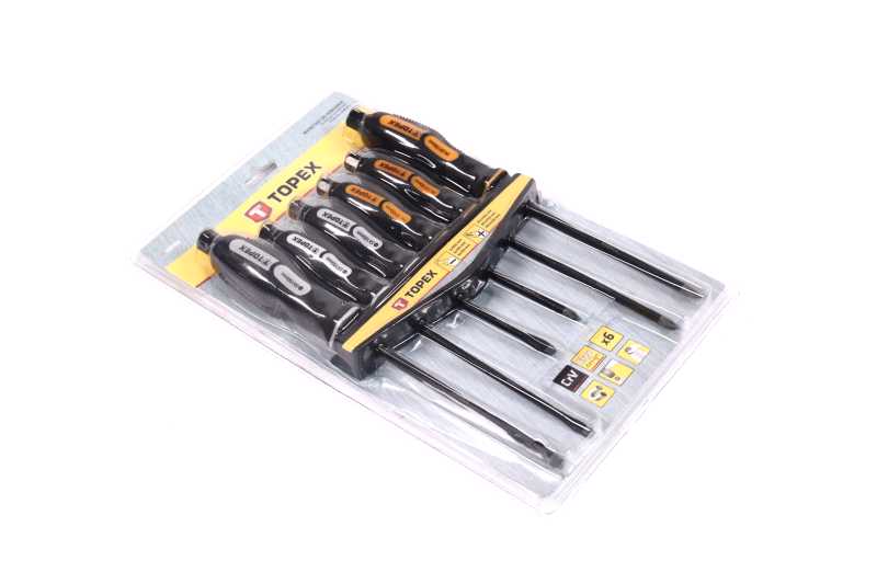 Набір ударних викруток TOPEX містить шість різних викруток, які дозволяють виконувати різноманітні роботи. У комплект входять: